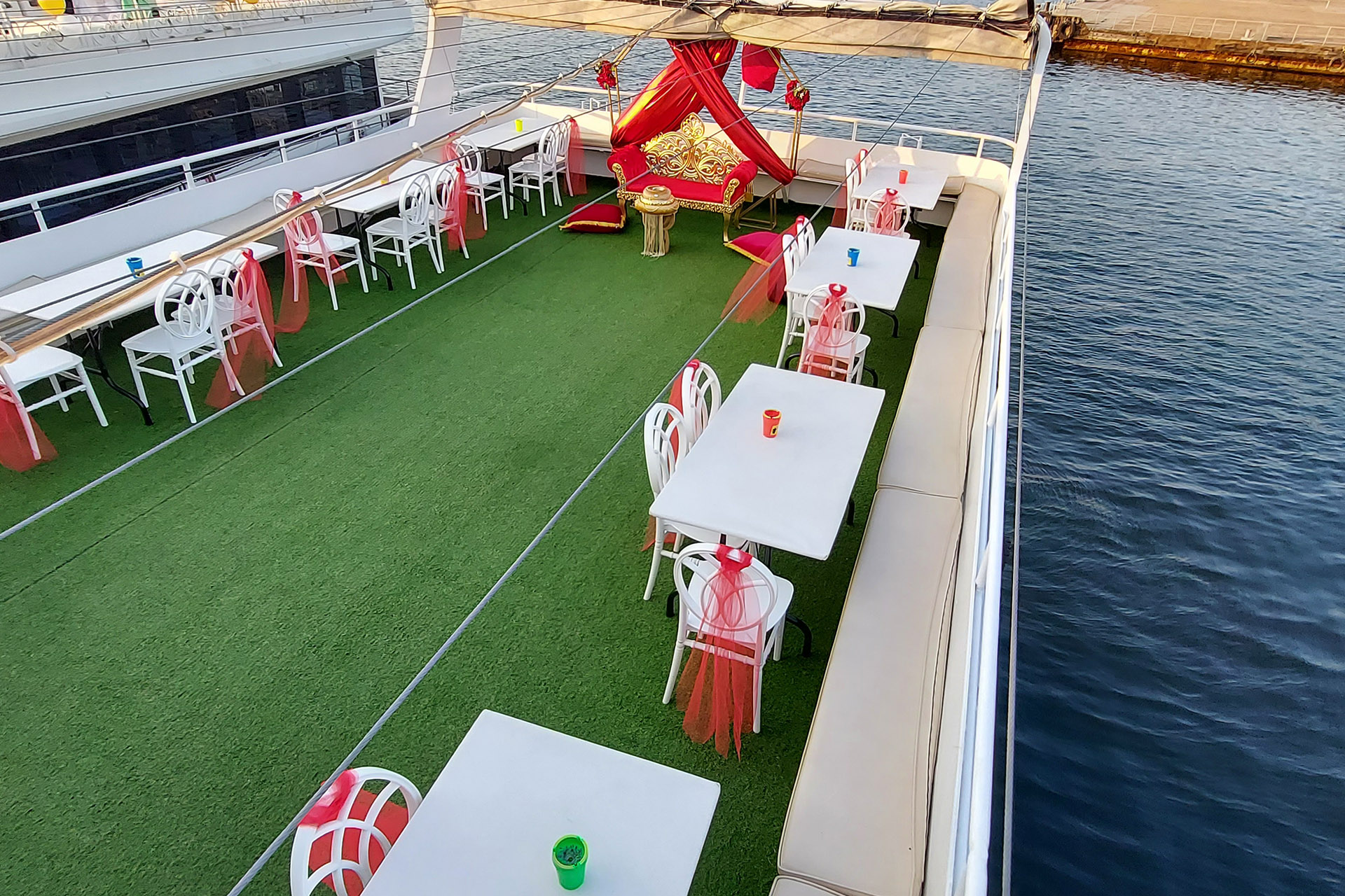 100 Kişilik Teknede Nişan kapsamında, geniş ve konforlu teknelerimizde romantik ve samimi bir atmosfer oluşturuyoruz. Deneyimli ekibimiz ve profesyonel hizmet anlayışımızla, sevdiklerinizle birlikte unutulmaz bir nişan kutlaması gerçekleştiriyoruz.