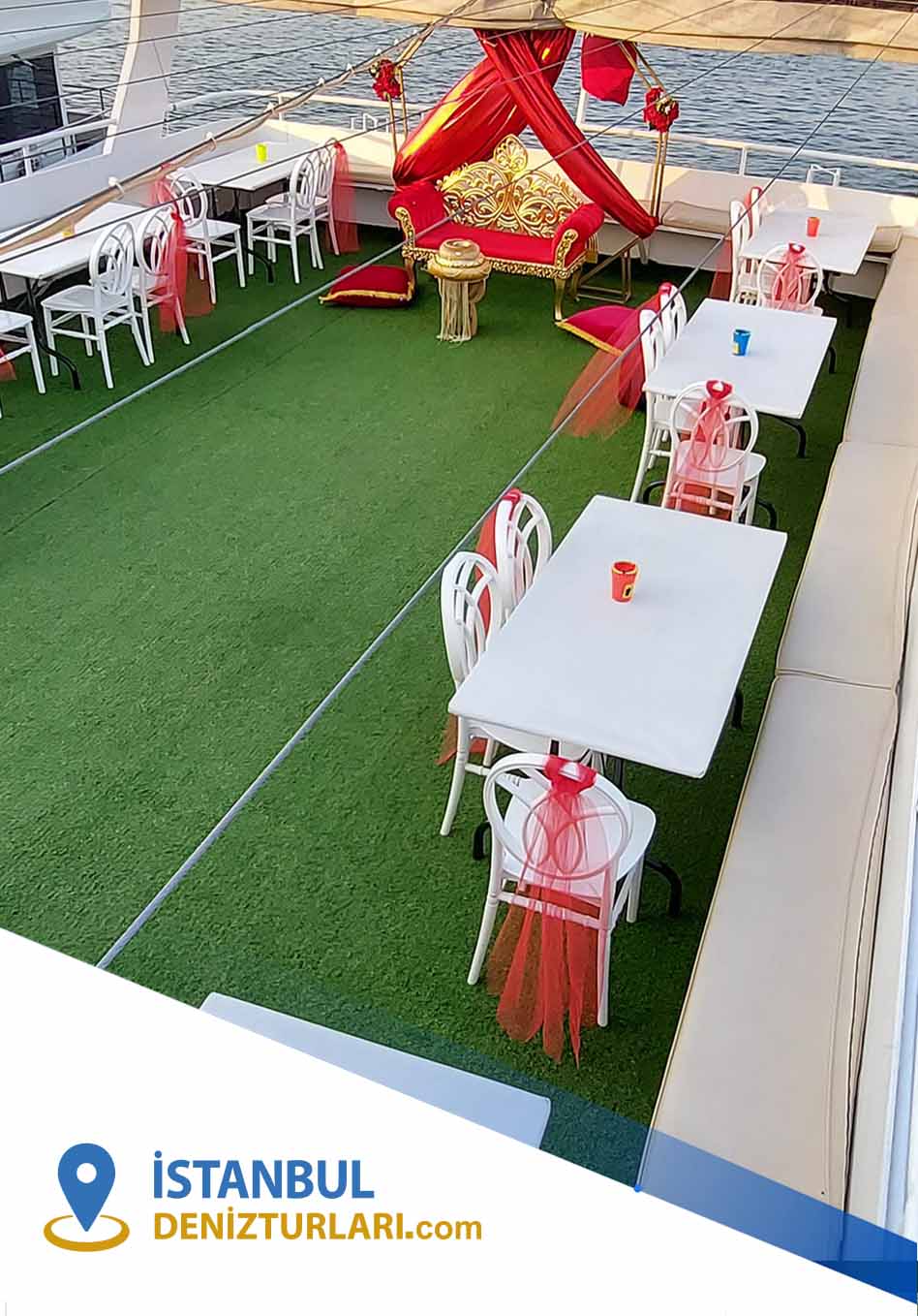 100 Kişilik Teknede Nişan organizasyonumuzda, özel menü seçenekleri, canlı müzik ve eğlenceli aktivitelerle, sevdiklerinizle birlikte keyifli ve özel bir gün geçirmenizi sağlıyoruz. Teknemizde nişan için özel sürprizler, hediyeler ve etkinliklerle, nişan töreninizi unutulmaz kılıyoruz.