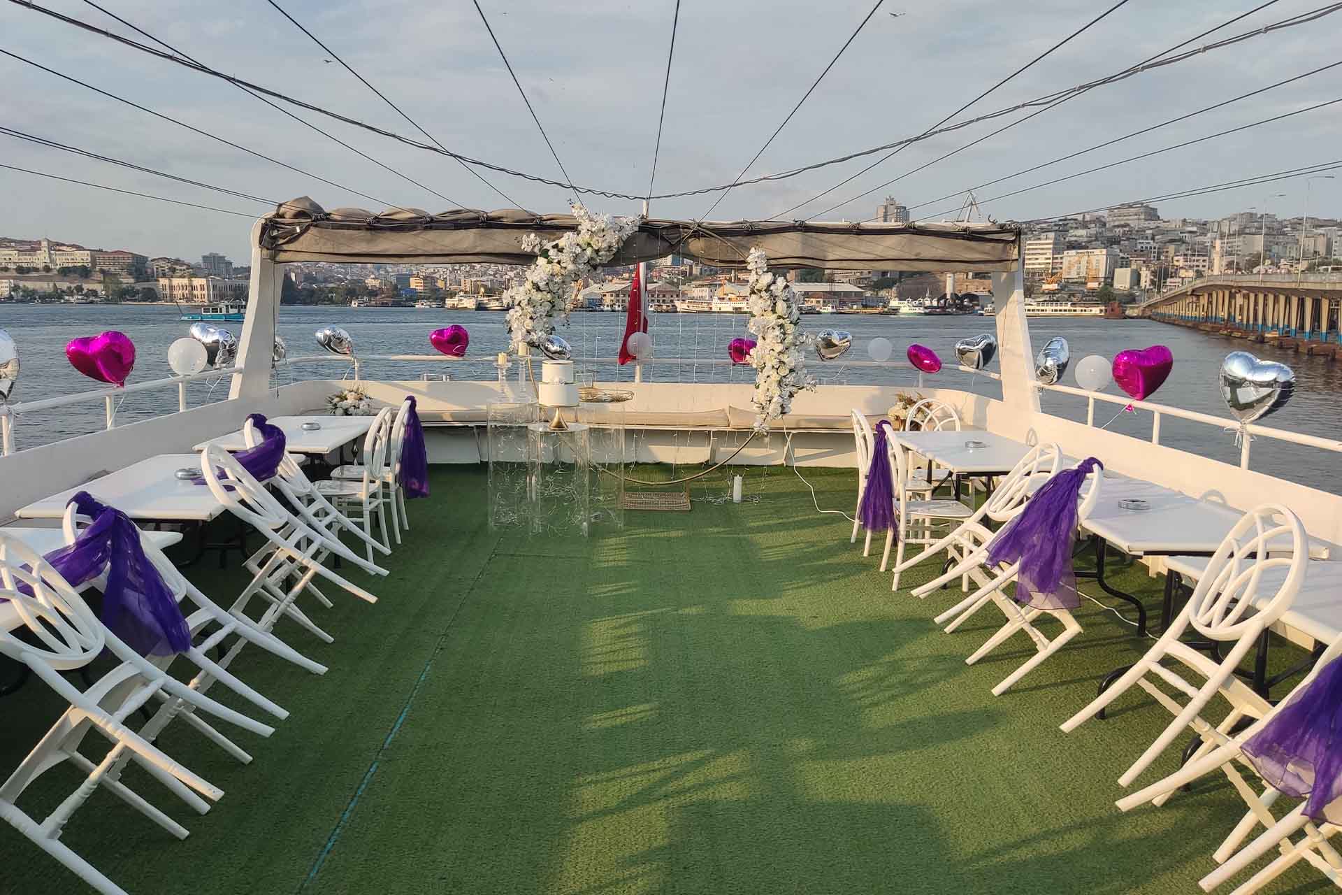 Firmanın sunduğu hizmetler arasında özel olarak dekore edilmiş teknede mezuniyet partileri düzenlemek de bulunur. İstanbul'un muhteşem manzarası eşliğinde yapılan bu organizasyonlar, öğrencilere unutulmaz bir deneyim yaşatır ve mezuniyetlerini özel kılar. Teknelerde sunulan lezzetli yemekler, canlı müzik ve eğlenceli aktivitelerle dolu bir gece, mezun öğrenciler ve aileleri için unutulmayacak bir anı haline gelir. Firmamız öne çıkan bir diğer özelliği, Teknede mezuniyet ile müşteri memnuniyetine verdiği önemdir. Her müşteri, firmanın özel ilgisiyle karşılanır ve istekleri doğrultusunda bir organizasyon planlanır. Profesyonel ve güler yüzlü personeli, müşterilerin her türlü ihtiyacını karşılamak için gece boyunca hizmet verir ve sorunsuz bir organizasyonun gerçekleşmesini sağlar.