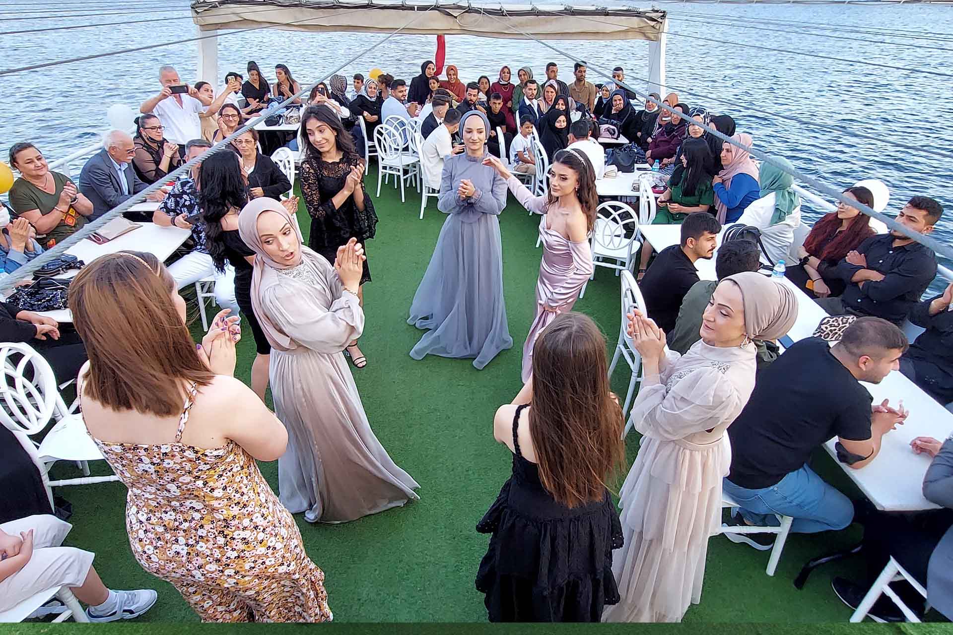 Teknede Mezuniyet Partisi organizasyonumuzda, özel menü seçenekleri, canlı müzik ve eğlenceli aktivitelerle, mezun olan öğrenciler ve sevdikleri için keyifli ve özel bir gün geçirmenizi sağlıyoruz. Teknemizde mezuniyet için özel sürprizler, hediyeler ve etkinliklerle, mezuniyet partinizi unutulmaz kılıyoruz.